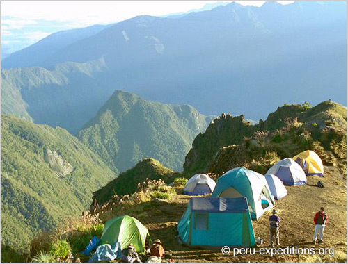 The day starts with the pass of Runkuracay (3900 m) where we see an Inca watchtower. Then we continue to the Inca ruins at Sayacmarca (a small maze like ruin built above a sheer cliff ) and, passing through a rock tunnel, we reach Phuyupatamarca ( City above the clouds) (3600 m), a beautiful set of linked stone baths still supplied by mountain streams. From this area, we should achieve views of Mt.Salkantay (6271 m), one of two most sacred peaks to the Incas. The descent down from the third pass (3600 m) is by a continuous set of steps (over 2300 of them), into cloud-forest, to our last campsite. From here a short walk takes us to the impressive ruins of Wiñaywayna (2600 m). The extra relaxation time provided here allows us to recoup our strength to make an early start the next day and maximize the experience of Machupicchu. We complete 7 hours.
