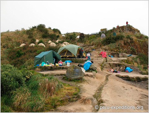 This second day is the most arduous of our journey. After a nice breakfast we commence by ascending to Warmihuañusca ( Dead Women ) pass ( 4200 m). This change of altitude means that we will pass through three separate ecological zones during the day : Quechua, Yunga and Puna ( from valleys with trees, through high pasture, to arid grassless are as short of the snowline ). The ascent of over (1,200 m) to the first pass earns magnificent views. Descending from this superb vantage point we pass waterfalls before making camp at Pacaymayu.(3550 m). We complete 8 hours hiking.