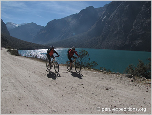 Mountain Biking the Cordillera Blanca (White Range): The Cordillera Blanca in the heart of Peru is an ideal place to go on a trek, hike, mountain bike, rock climb and mountaineer. Many famous peaks and lakes can be seen from this tour, including Huascarán, Alpamayo, Tocllaraju, el Nevado Pisco, and Artesonraju.
